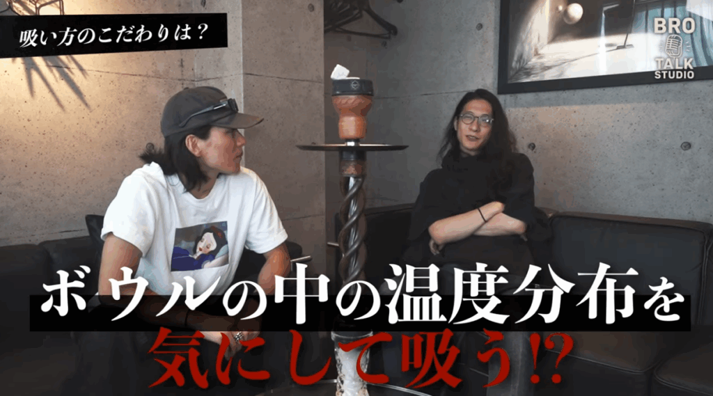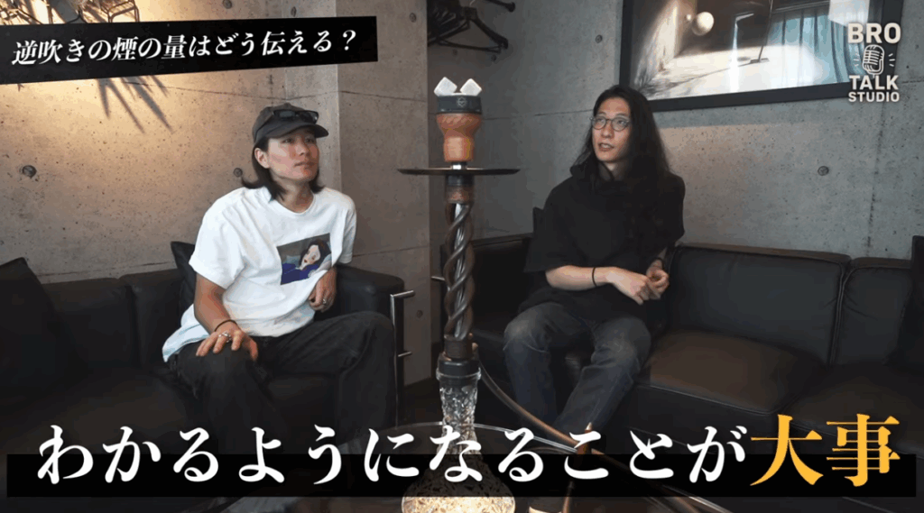 SOHEI氏にとって逆吹きは、「おしゃれじゃん、楽しい」という習慣(カルチャー)で行っているのが最も大きな理由。そのついでに、ボウルの上の煙を見て現在の温度を確認している側面もある。